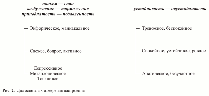 Традиционные клинические описания психических расстройств аффективного регистра (табл. 1) разнопорядковы и разнородны. В частности, описания депрессивных и тревожных состояний до сих пор осуществляются как бы на плоскости, т.е. художником-примитивистом, не знающим перспективы, не передающим реальной многоплановости пространства, игнорирующим измерение глубины.